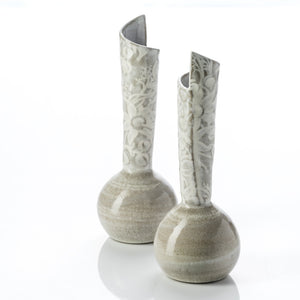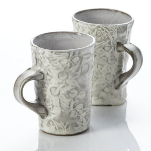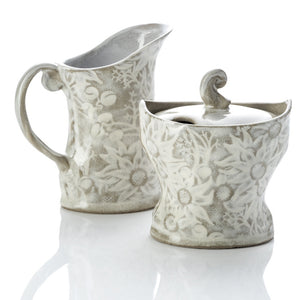 She is currently best known for her “Flannel Flower” range which incorporates a 100-year-old Flannel Flower pattern sourced from an Australian Federation window pane (in her home which has been in her family for 5 generations). She is also producing a line of work made up of simple thrown forms which has evolved from a series of cafe and restaurant commissions.
