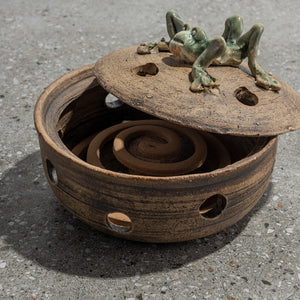 There are hundreds of studio potters around Australia, many of whom produce really beautiful work, but in very small quantities who, for one reason or another such as family commitments, do not want to be pressured into producing ongoing quantities of work This section is designed to sell their pots without expecting them to produce more. The items in this segment are generally always one-of-a-kind. I often find them at fairs and exhibitions run by local potters clubs and societies right around Australia. There is no plan to what I buy for this section, you will find pots across all categories and sub categories. I just buy them when I see something well made, imaginative, beautiful and useful. I only buy when the potter can be identified and verified, so that we know the provenance. In all instances the potters name and regional location is recorded in our database.